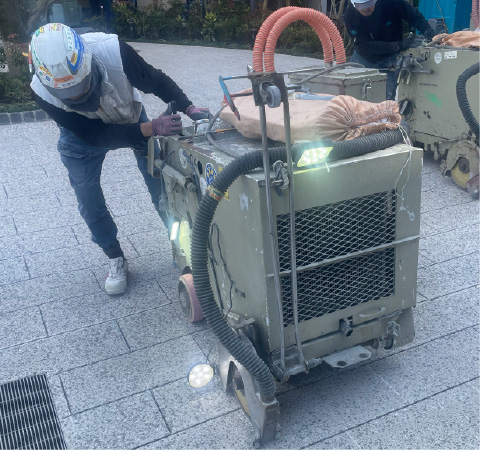 特殊舗装に、ドライカッターで目地を入れ、