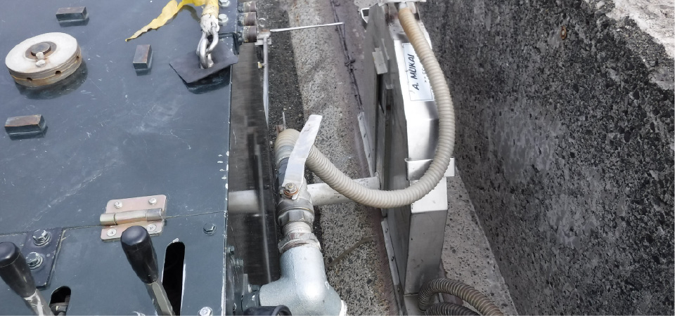 冷却水を使わずアッパーカット方式とし、切削粉を回収する大型バキューム装置を装着したロードカッターにて施工するものです。収集した切削粉は建設資材として再資源化が可能となるため、環境的には理想的な工法です。