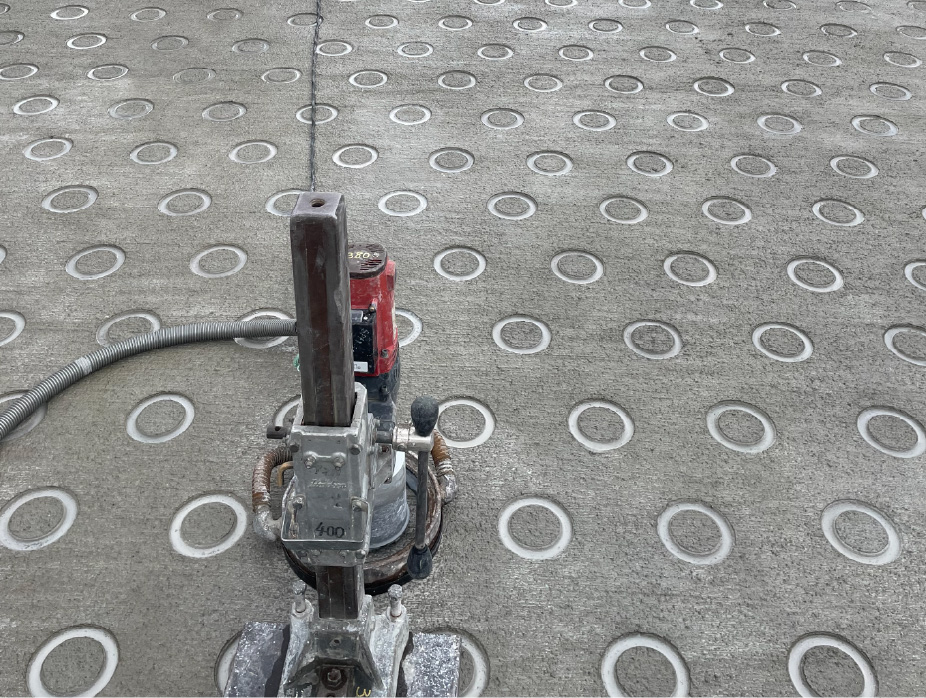 また、ハツリでは困難な⼤⼝径穿孔(500Φ当社)や⾼深穿孔が可能です。