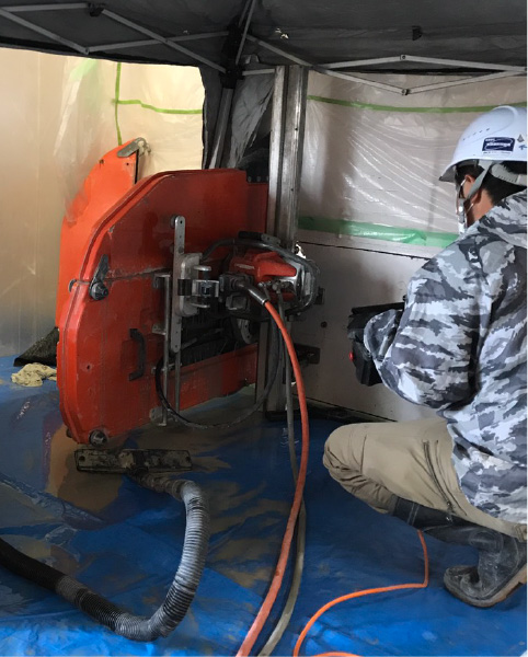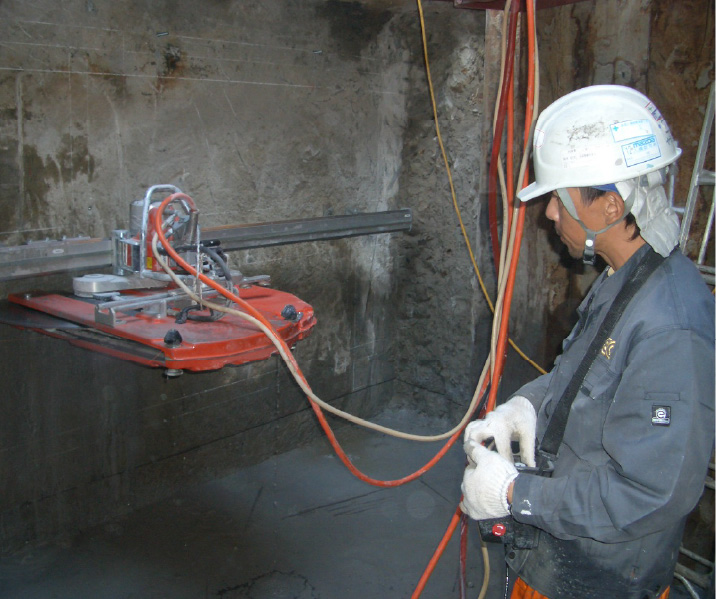 壁や床などの平面部分をダイヤモンドブレードで切断する、迅速かつ効率のよい工法です。
